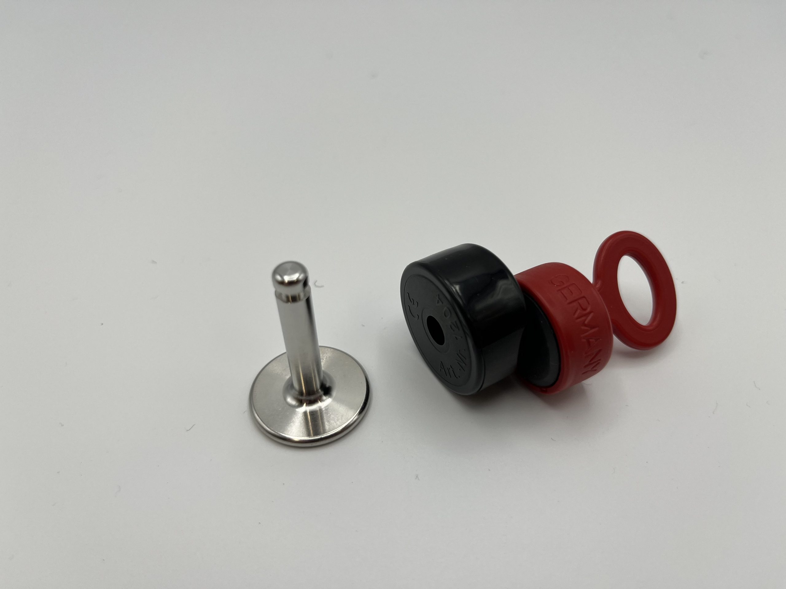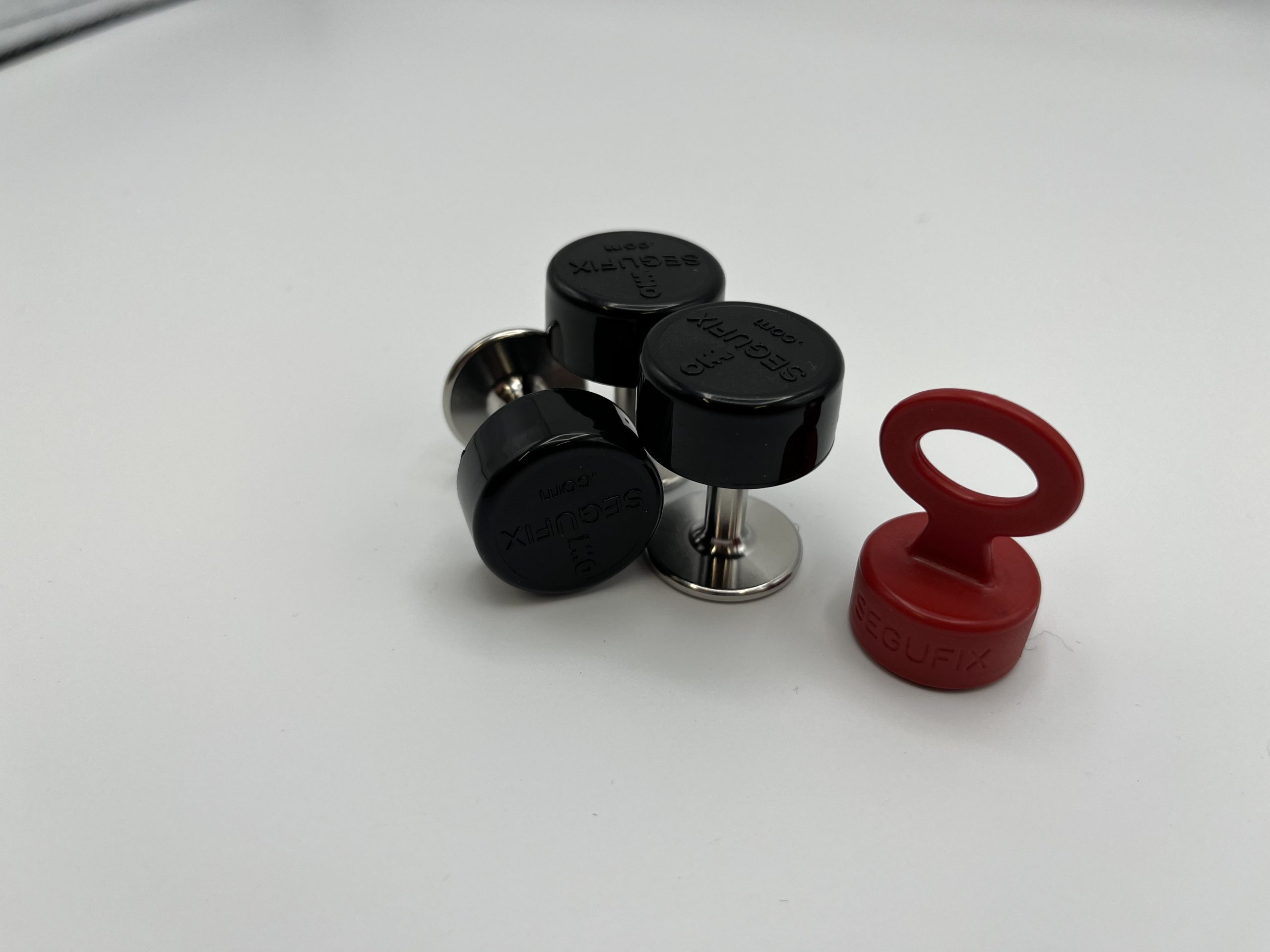 Mit den drei Magnetschlössern (zwei an den unteren Gurten, das dritte am Oberen) kann die Maske nicht mehr ohne den passenden Magnetschlüssel entfernt werden.