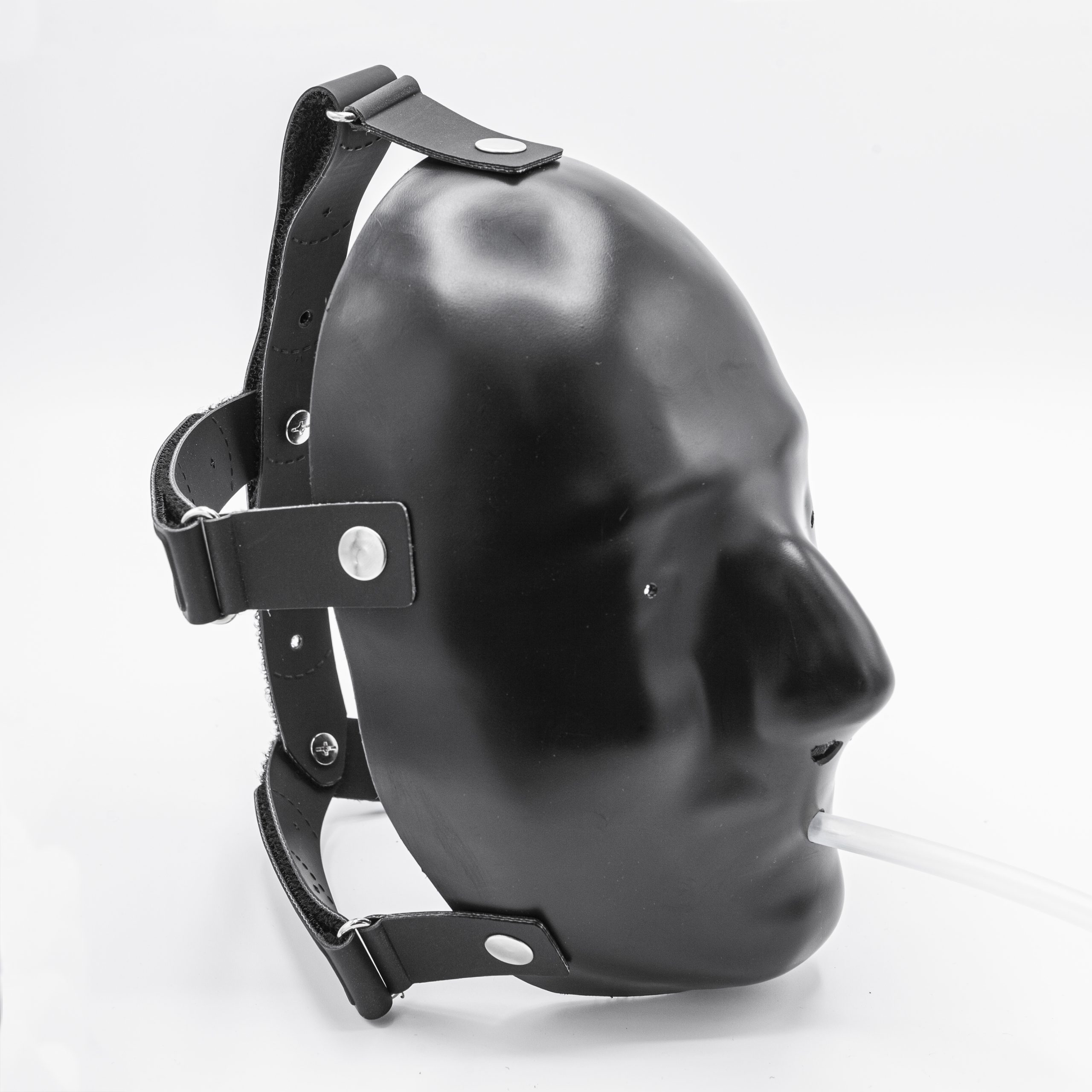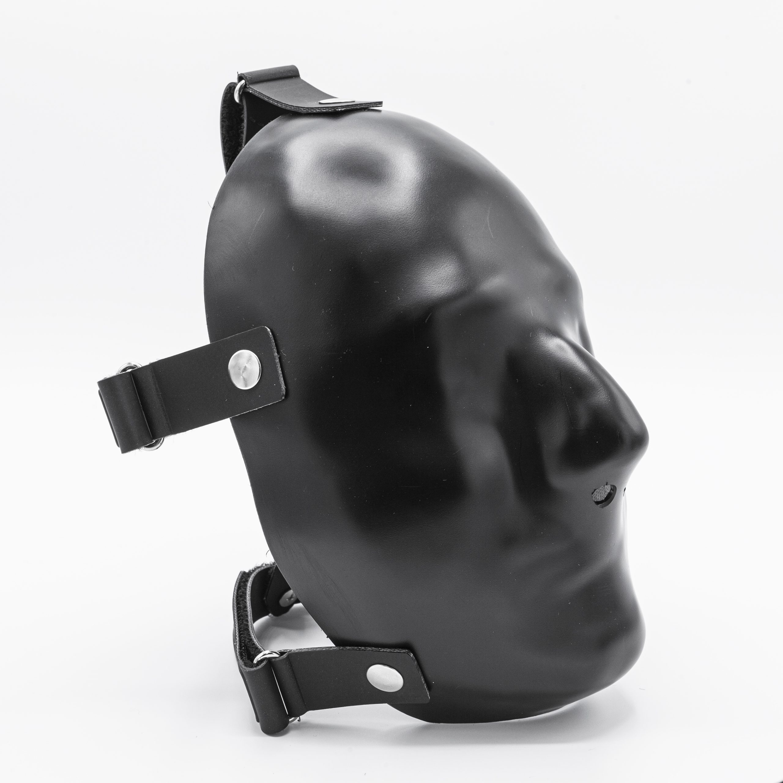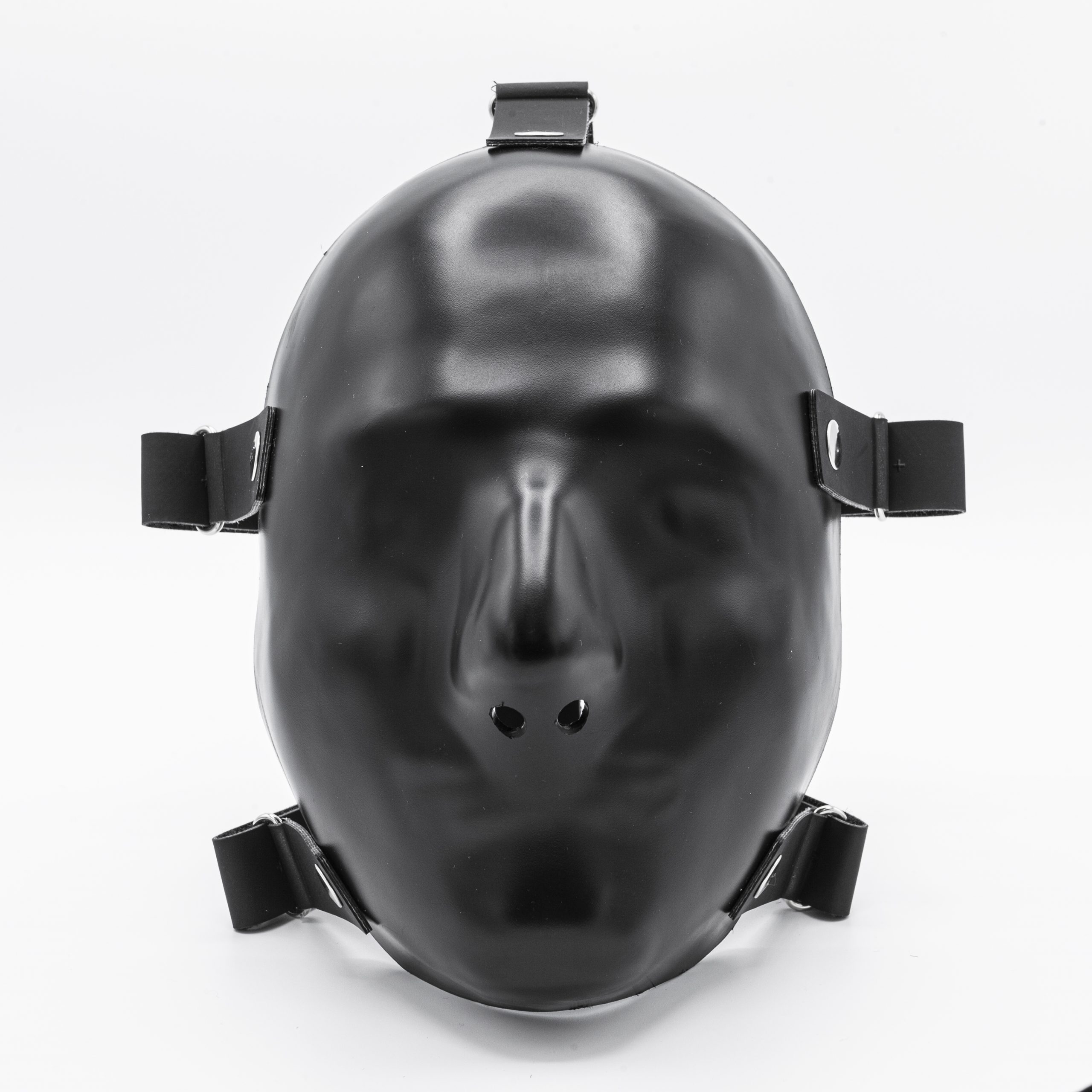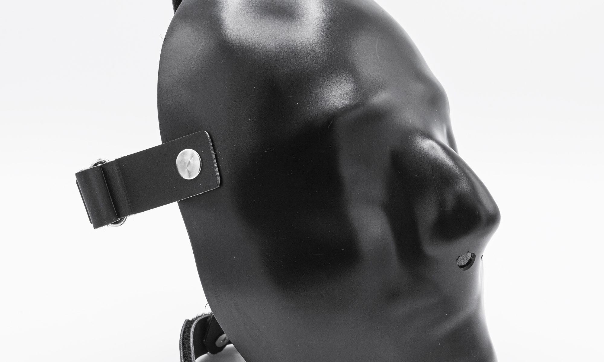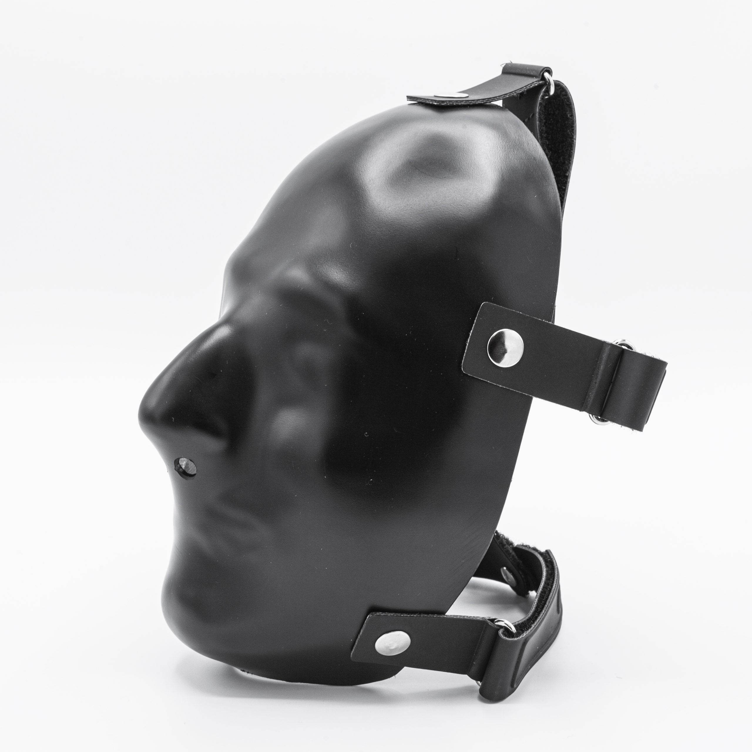Die harte Oberfläche blockiert den Sinn für Berührung und läßt keine Deiner Regungen nach außen durch – eine neue Dimension der „sensual deprivation“. Wenn Du die Variante ohne Öffnung für die Augen wählst, verdient die Maske ihren Namen: Blackout. Durch den schwarzen Kunststoff siehst Du: nichts. Auch nicht bei direkter Sonneneinstrahlung.